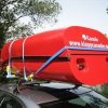 Ein Kanolo übernimmt auf dem Autodach zusammengeklappt automatisch die Funktion einer Dachbox für Kanu-, Camping- oder Badezubehör.