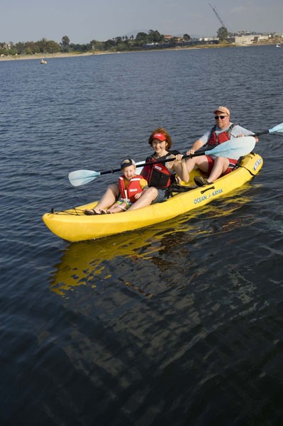 • Seats two adults, plus a small child or pet. Can also be paddled solo from center seat.